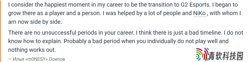G2战队的时候,因为在那里,他无论作为选手还是个人都得到了成长。