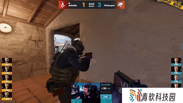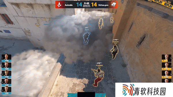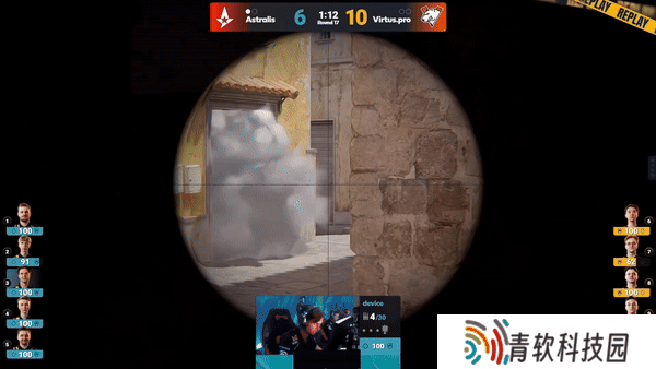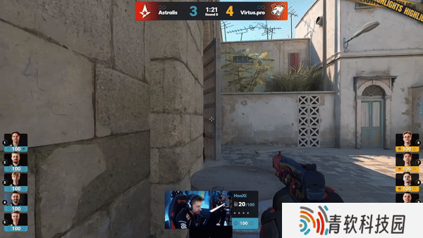 Virtus.pro先做进攻方。手枪局,土匪五人B区爆弹被一颗烟雾弹拖住只能另寻出路,A门的stavn绕后拿到信息,土匪人数大劣送出手枪局。