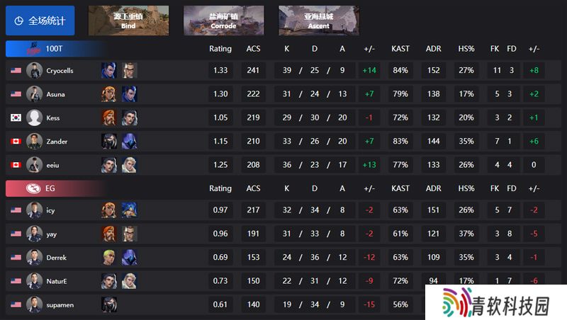 2025 VCT 美洲联赛第二赛段,败者组首轮,100 Thieves直落两图击败Evil Geniuses,Matthew Panganiban | Cryocells发挥出色砍下全场最高的39总击杀。