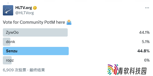 在昨天HLTV发起的六月代表选手的社区投票活动中,四位选手入选了最终的投票环节,他们分别是ZywOo、donk、Senzu和ropz。四位选手都在6月份的奥斯汀Major上有着出色的发挥。