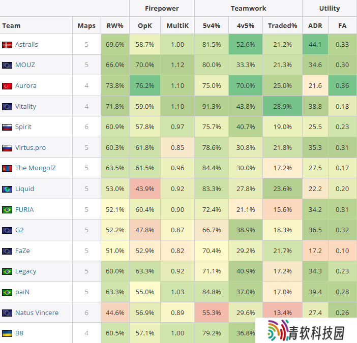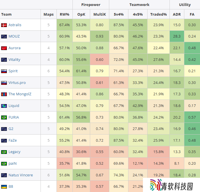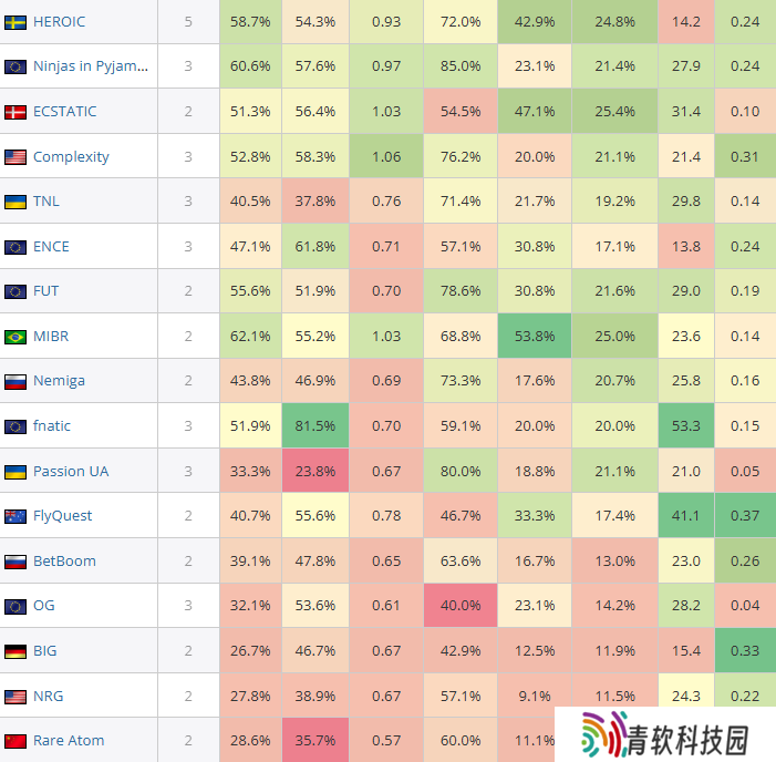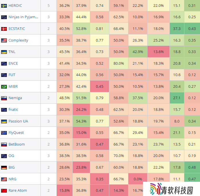 BLAST 赏金赛S2线上赛阶段进攻方回合胜率排行