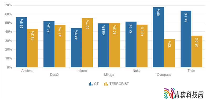 BLAST 赏金赛S2线上赛阶段防守方回合胜率排行