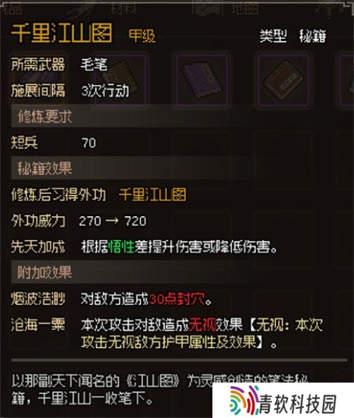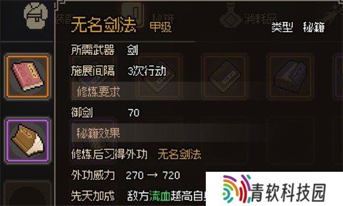 1、接下来介绍第二本武学,这武学没有名字,因为它并不是根据书的名称命名的,想要拥有这门武学,是要满足特定条件的。