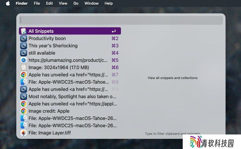 本站 6 月 10 日消息,科技媒体 AppleInsider 今天(6 月 10 日)发布博文,报道称苹果公司在最新发布的 macOS 26 Tahoe 更新中,聚焦搜索(Spotlight Search)支持剪贴板历史,是苹果的又一次Sherlocked行为。